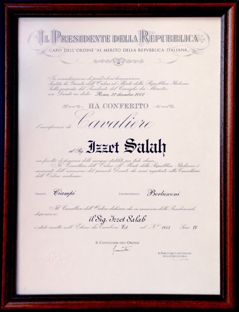"The Italian State, awarded our Chairman of the Board of Directors, Mr. Ferhat Selamoğlu, title of 'Commendatore' andour General Coordinator, Mr. Izzet Salah, the 'Cavaliere' and the 'Ufficiale' orders of honor." Through the Italian Embassy.